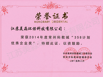 2014年度常州科教城358計(jì)劃優(yōu)秀企業(yè)獎(jiǎng)