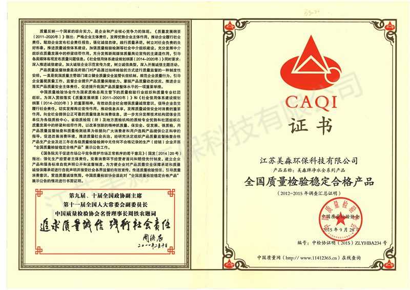 2015年全國(guó)質(zhì)量檢驗(yàn)穩(wěn)定合格產(chǎn)品