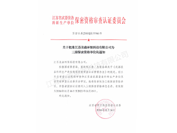三級保密資質證明通知書