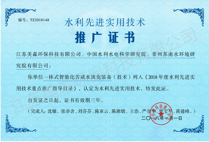 水利先進(jìn)實(shí)用技術(shù)推廣證書(shū)
