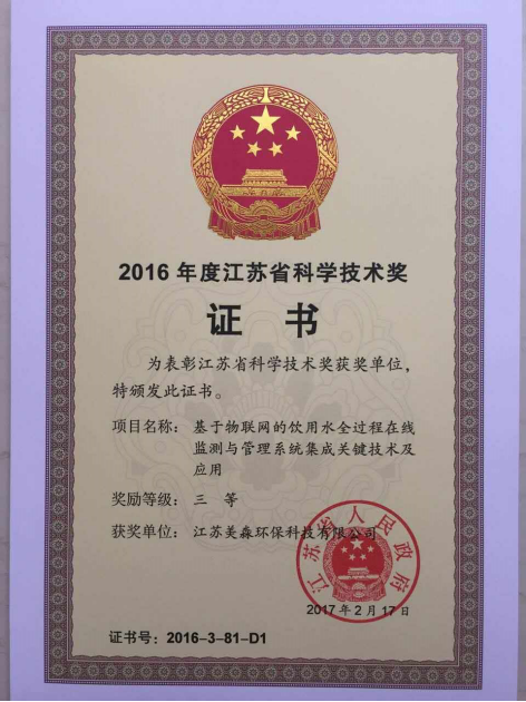 近日,全省科學(xué)技術(shù)獎(jiǎng)勵(lì)大會(huì)落下帷幕,向全省優(yōu)秀企業(yè)頒發(fā)省科學(xué)技術(shù)獎(jiǎng),常州市僅16家獲獎(jiǎng),美淼環(huán)保位列其中,獲此殊榮。獲獎(jiǎng)的“基于物聯(lián)網(wǎng)的飲用水全過(guò)程在線監(jiān)測(cè)與管理系統(tǒng)集成關(guān)鍵技術(shù)及應(yīng)用”是美淼智慧水務(wù)系統(tǒng)的核心技術(shù)。